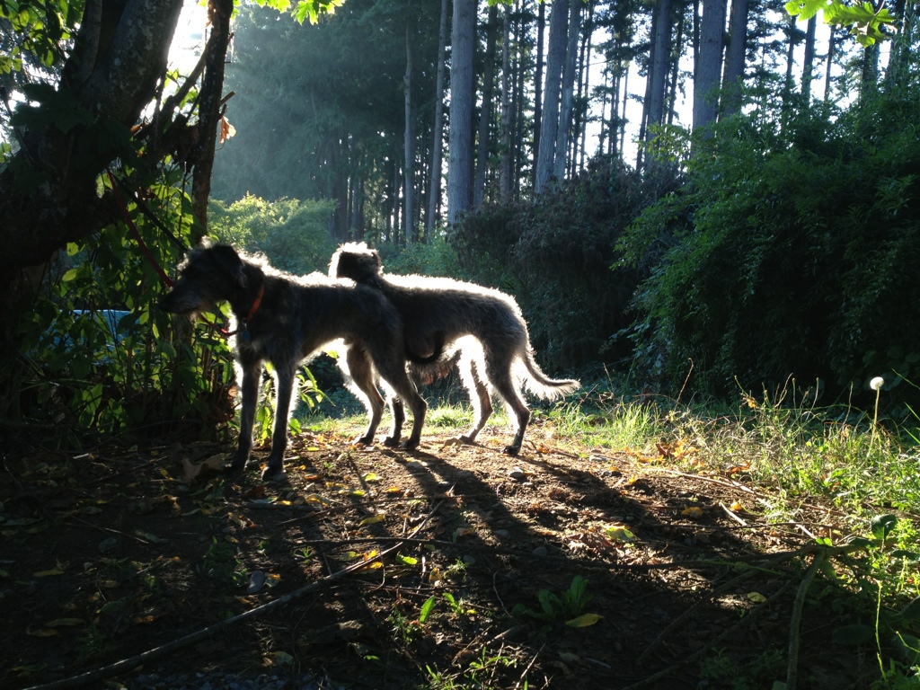 Pippi and Tuulen (whippet-standard poodles) ready for morning rounds…