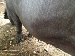 It seems I am spending a lot of time these days staring at sow udders (yes, swelling – larger each day), squeezing sow teats (Pearl has been secreting milk for a week now, Cora not yet) and examining bedding for signs of excessive fluffing. Waiting for piglets to arrive is nerve-wracking! It’s good to be on hand at farrowing time to minimize squishing of newborns, but those sows don’t always provide details of their planned delivery times!