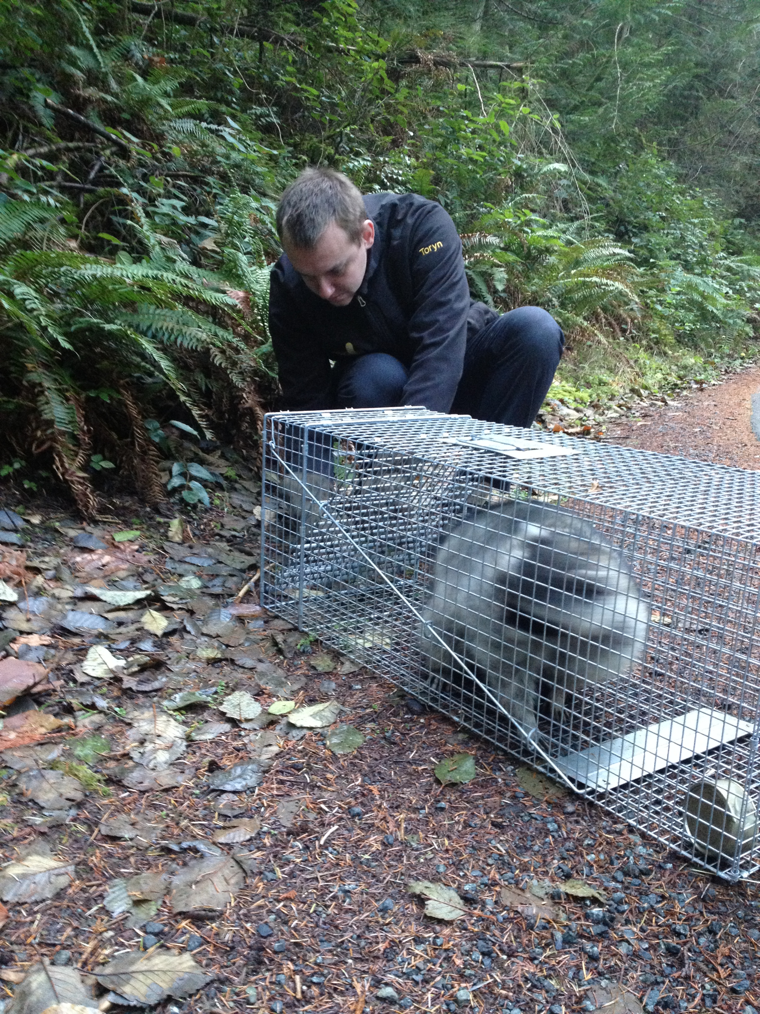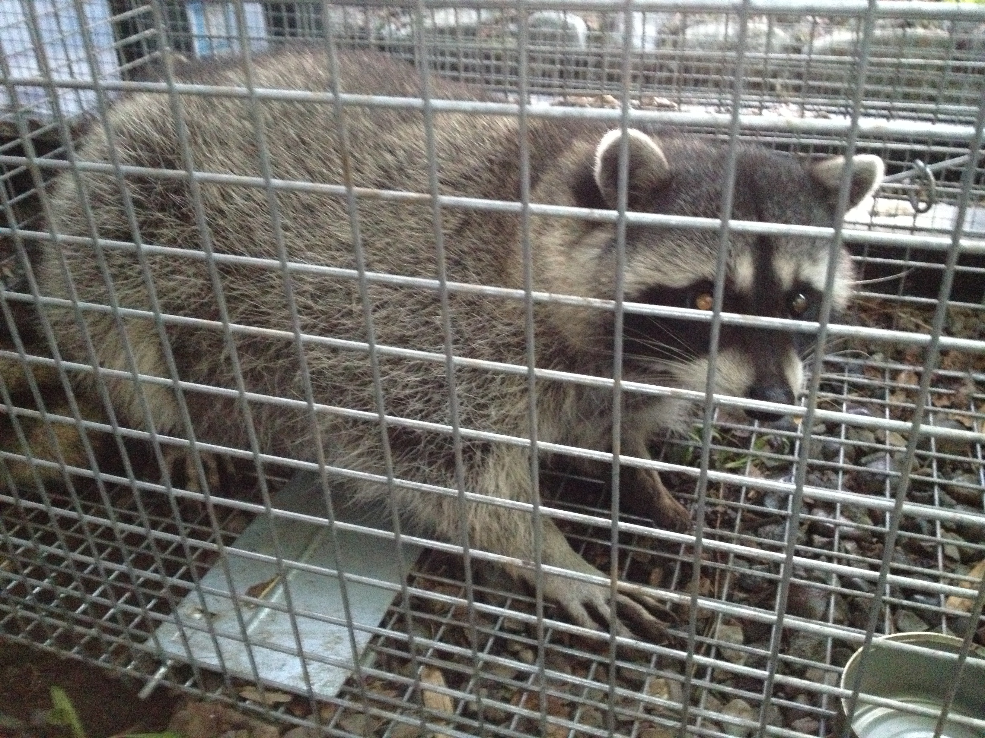 A couple of weeks later, we caught the neighbour’s cat. The cat was rather miffed that it had been busted stealing the cat food we had used as bait, but the ferret food remained untouched. We speculated that maybe the raccoon had met with an untidy end up on the highway or had seen traps before and knew it was best to avoid our place.