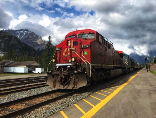 Choo-choo-choose your own adventure day! Too cold, too wet, and too tired to do anything more than post this photo I took the other day when I was in Banff and the train roared past me…