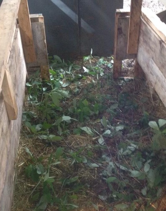I took the 9am ferry over to the mainland and was just about to drive off the boat when a text came in from LS, who is visiting from Berlin and holding the fort while I was away. Olivia, according to LS, was behaving strangely. He sent a couple of photos of her pen. She had been busy in the couple of hours since I left the farm. She had stripped leaves from the bushes in her run and scattered them around in her bed inside the safety pen. She dragged in mouthfuls of sticks and twigs and added them. She rooted around and fluffed up the hay from underneath the fresh debris and mixed it all together. Olivia was nesting!!