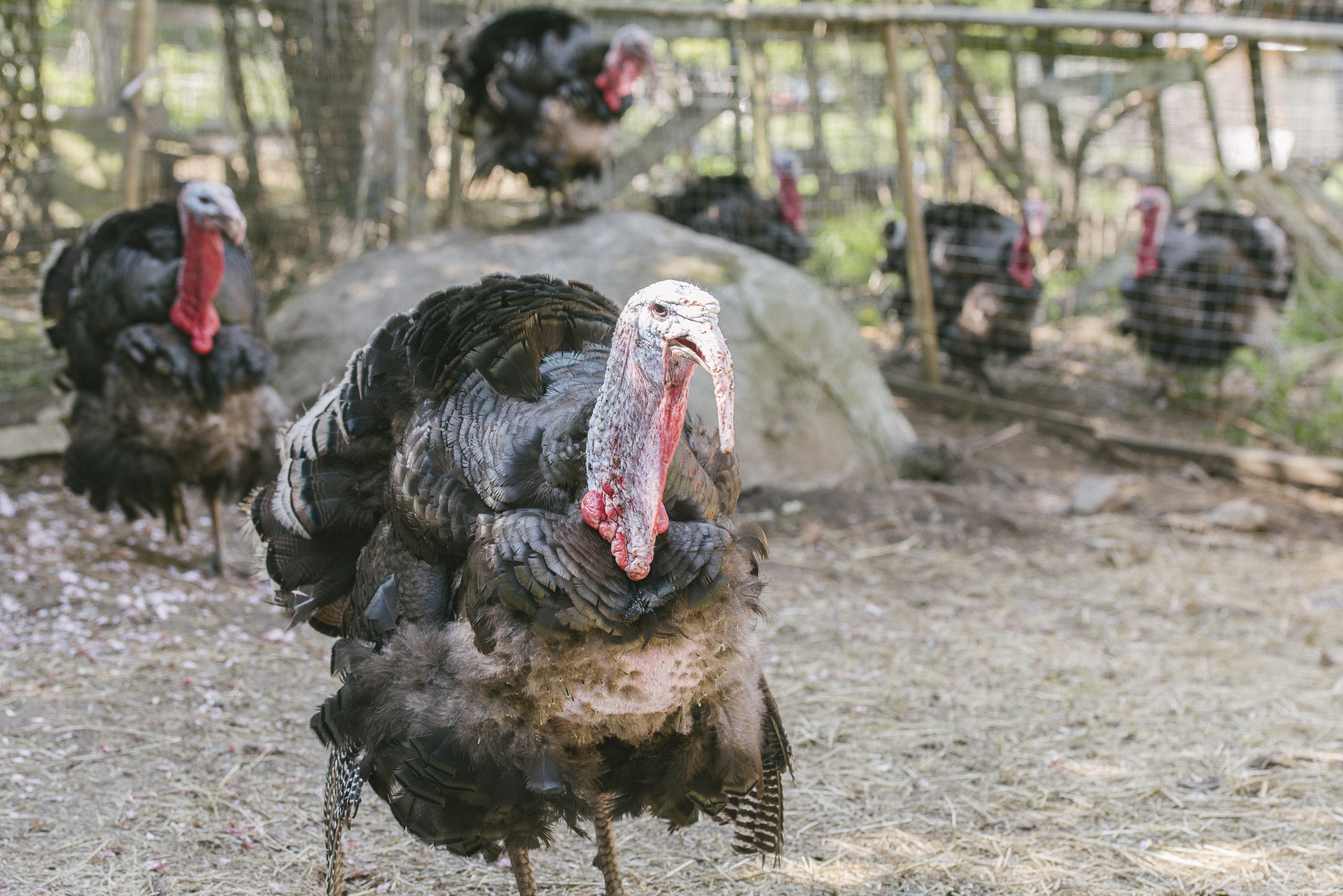Without the competition from the larger flock and some extra time, the smaller birds will have a chance to grow out in time for Easter or Thanksgiving of next year. Carrying more than 15-20 birds year round gets very expensive – commercial organic feed is exorbitant and during the winter months there isn’t much decent pasture for the birds to devour. And devour they do! Hungry turkeys eat an incredible amount each day and though I supplement with hay and veggies and softened alfalfa cubes (plus whatever they manage to find themselves), the feed bill gets out of hand very fast when I’m feeding too many birds.