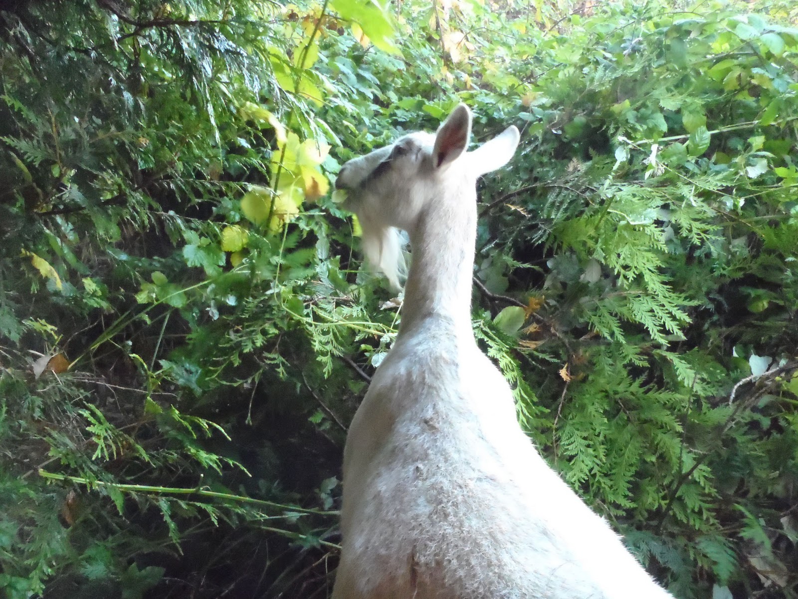 Is there anyone who is happy about this abundance of invaders? Indeed, yes – the goats! Unfortunately, the area we are clearing at the moment isn’t one that I can easily fence or we’d just let the goats come in and strip the canes. They happily wade right into the nastiest of thickets, noshing all the way and will eat all but the oldest, toughest stalks when given half a chance. After they are done, the hogs are great at using their powerful snouts to dig out the roots, which they eat with gusto. Such a shame this isn’t really a livestock-friendly area. Not wanting the creatures to be left out of all the fun, I hauled several wheelbarrows full down to the goat pen and they were happy to help us out with a bit of pre-compost processing.