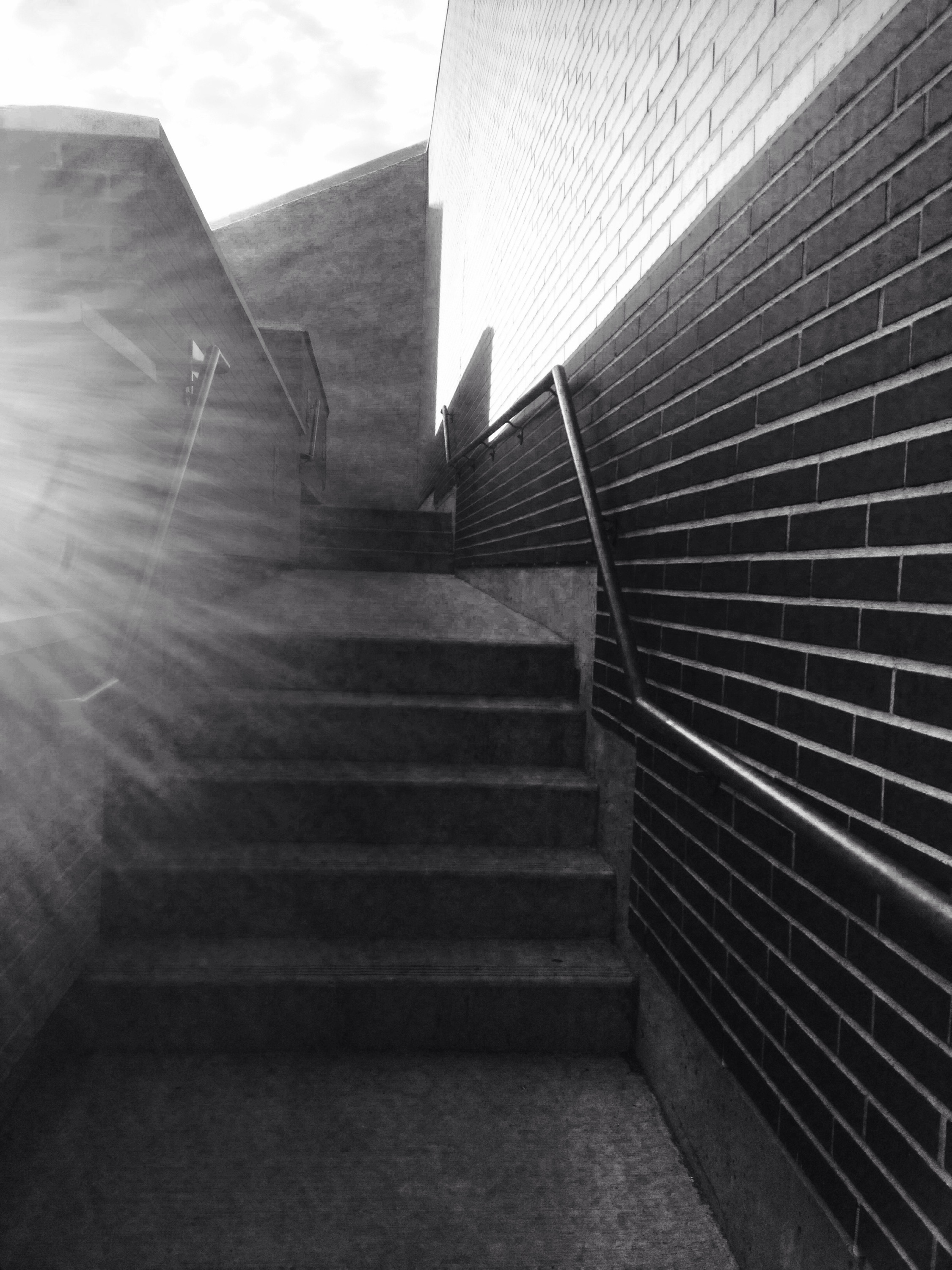 Snapped this yesterday when walking up the stairs to rooftop parking at a local shopping mall. A very ordinary photo was made more dramatic by converting to black and white and upping the contrast a bit.