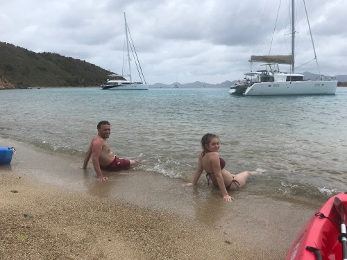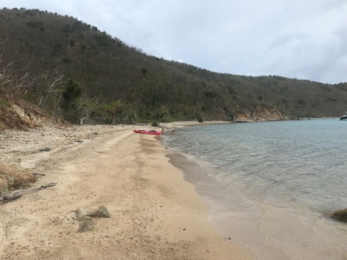 In particular, down there on Norman Island on a mooring ball in The Bight. Our very kind neighbor at the dock in Manuel Reef loaned us his kayaks (thanks, Philip!) so we could get ashore once on our mooring ball… Checked the weather (rainy tomorrow, a bit on the windy side) but getting slowly better as we inch toward departure day next Tuesday.