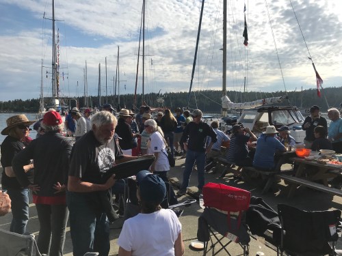 My visit ended with a great potluck! The dinghy rode a bit lower in the water when the time came to shuttle me back to land to catch my taxi down to the other Pender Island (there are two – north and south).