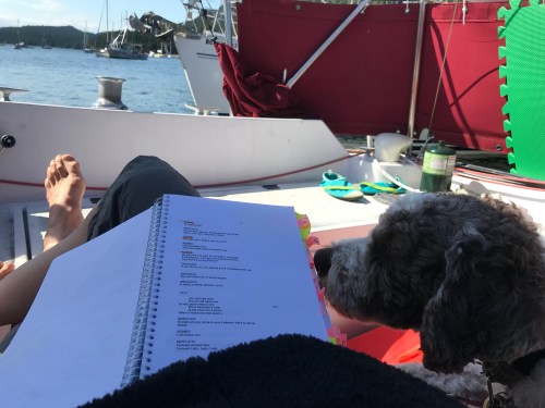 … and the dog, of course! I don’t have any grandchildren, but I sure do enjoy hanging out with my grad puppy Spartacus (Sparty). He’s becoming such a confident little boat dog!